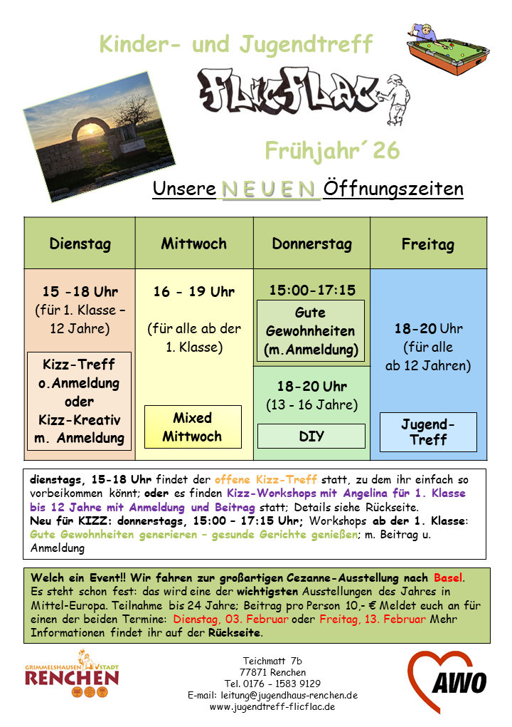 18-20 Uhr: (für alle ab 12 Jahren): offener Jugend-Treff